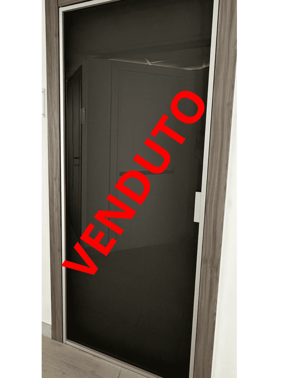 PORTA BATTENTE con vetro satin grey e telaio in alluminio satinato